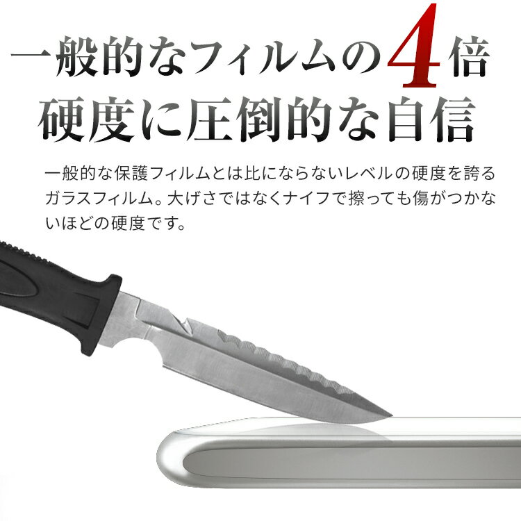 一般的なフィルムの4倍硬度に圧倒的な自信 一般的な保護フィルムとは比にならないレベルの硬度を誇るガラスフィルム。