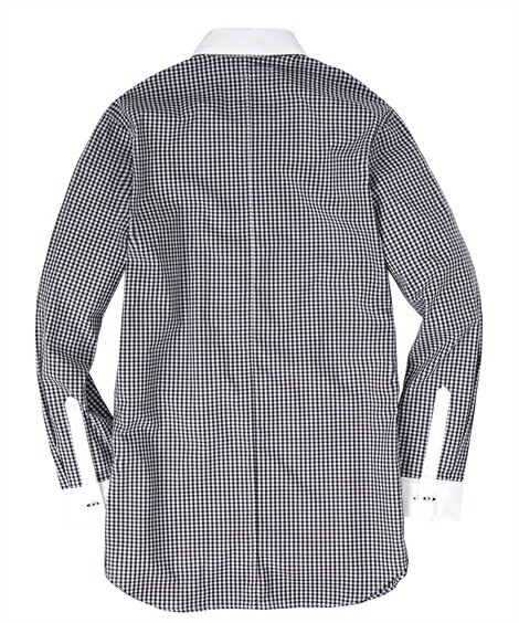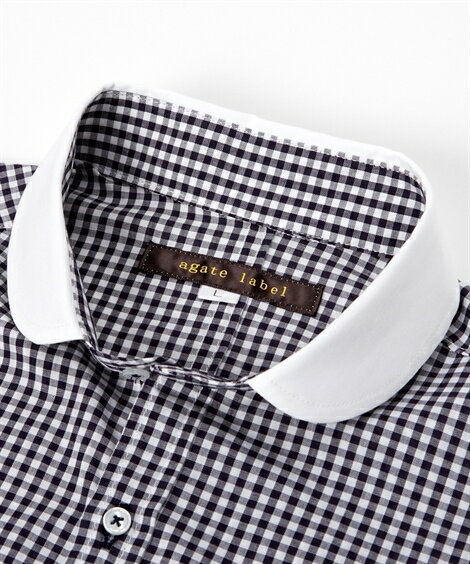 ワイシャツ ビジネス メンズ 日本製 綿100% クレリック デザイン 長袖 シャツ カッタウェイ カラー 黒ストライプ/紺チェック M/L/LL ニッセン