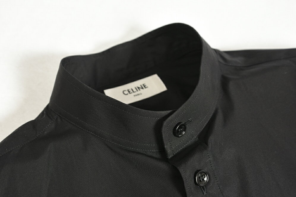 CELINE セリーヌ 【送料無料】スタンドカラー シャツ メンズ 春夏 コットン 綿 100% ブラック 黒/M 2XL/パリ ブランド ドレススタイル