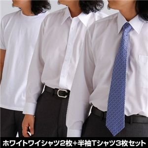 メンズファッション トップス ワイシャツ 関連 ホワイト長袖ワイシャツ2枚+ホワイトTシャツ2枚+黒Tシャツ1枚 LL 【5点セット】