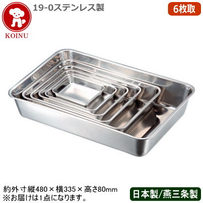 【角バット ステンレス 日本製】KOINU 19-0ステンレス製 角バット 6枚取【新潟県/燕三条/業務用/調理道具/厨房用品/スタッキングOK/キッチン用品/バット/バッド/揚げ物/天ぷら/から揚げ/小麦粉/パン粉/お菓子作り/下ごしらえ/角プレート/角トレー/衛生的/仔犬/KO/X】