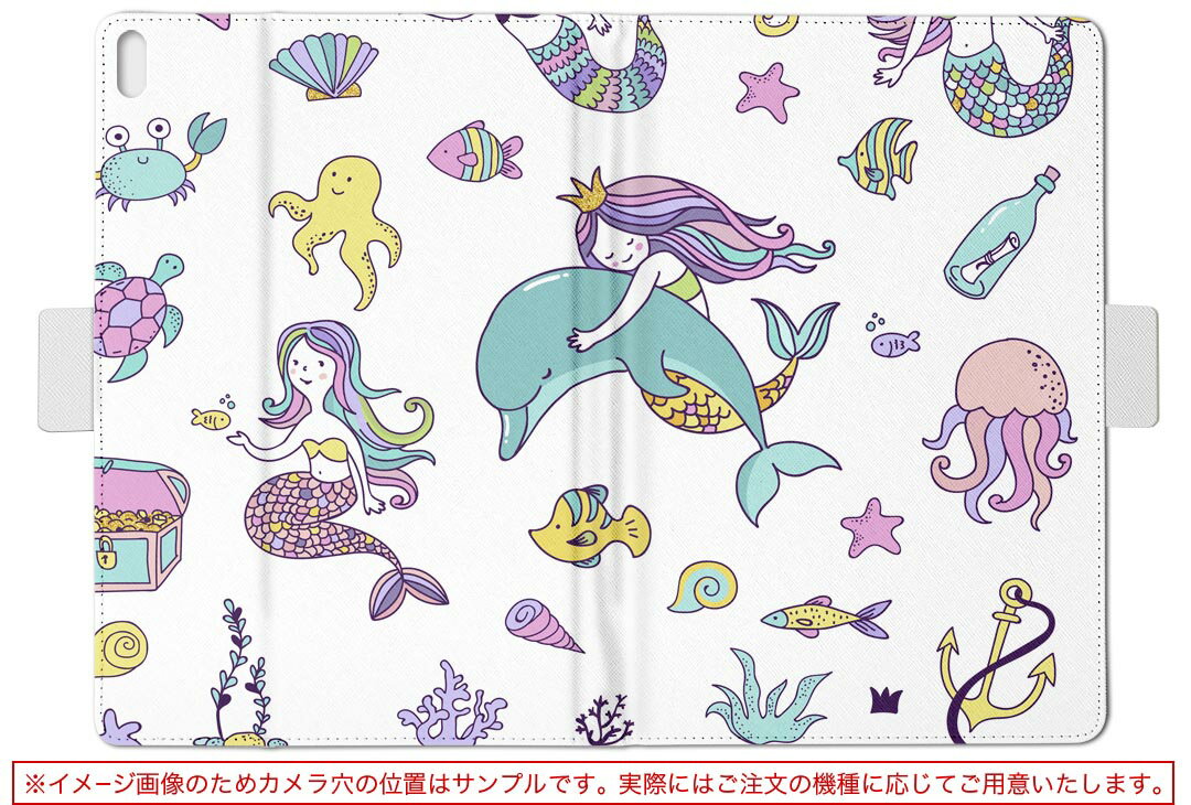 d-01h Huawei ファーウェイ dtab ディータブ d01h Lサイズ 手帳型 タブレットケース カバー レザー フリップ ダイアリー 二つ折り 革 014512 マーメイド 人魚 イルカ